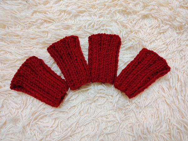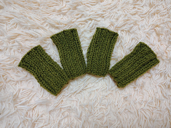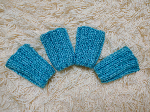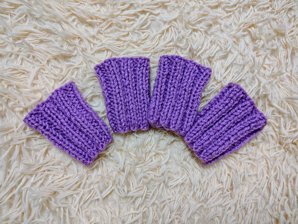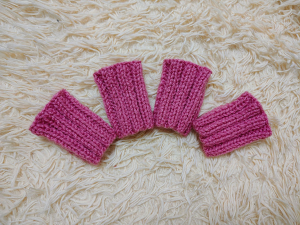 Warmers for the front legs of a dog or cat are a set of 4 pieces for the front and rear legs. The size of the leggings height is 3 inches (8 cm), diameter 3-4 inches (8-13 cm).Made from wool 40% acryl 60%