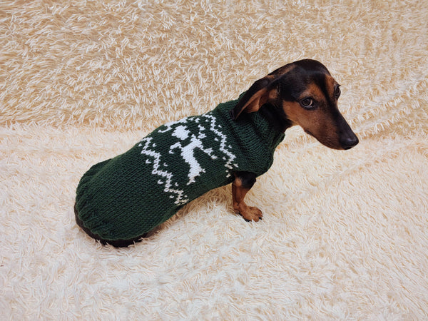 Christmas dog costume knitted sweater, christmas dachshund jumper, christmas pet clothes.Christmas striped dog jumper with pom poms, christmas dog clothes