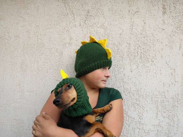 Set of hats with pom-pom for mom and dachshund, set of knitted hats with pom-pom for hostess and dog