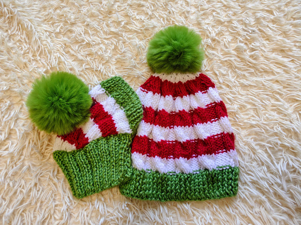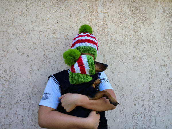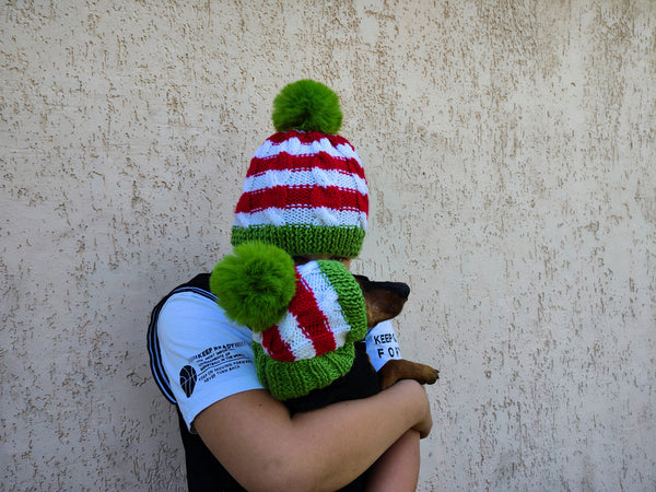 Set of hats with pom-pom for mom and dachshund, set of knitted hats with pom-pom for hostess and dog