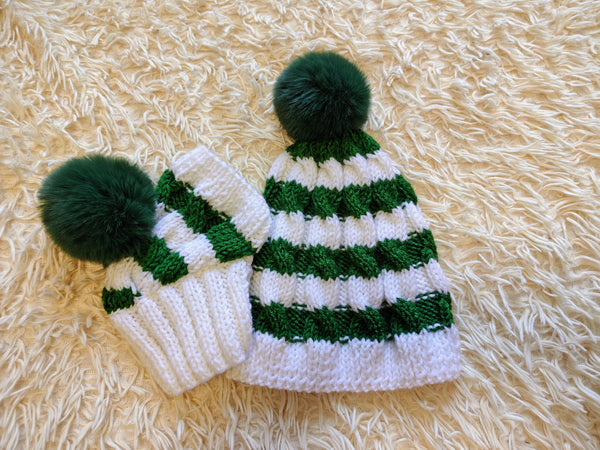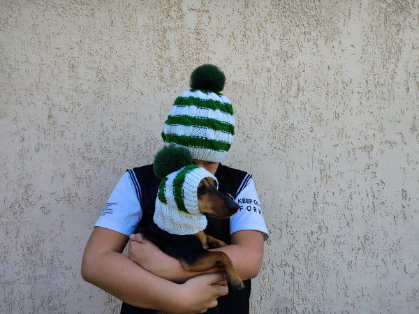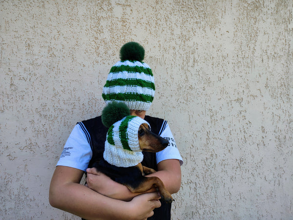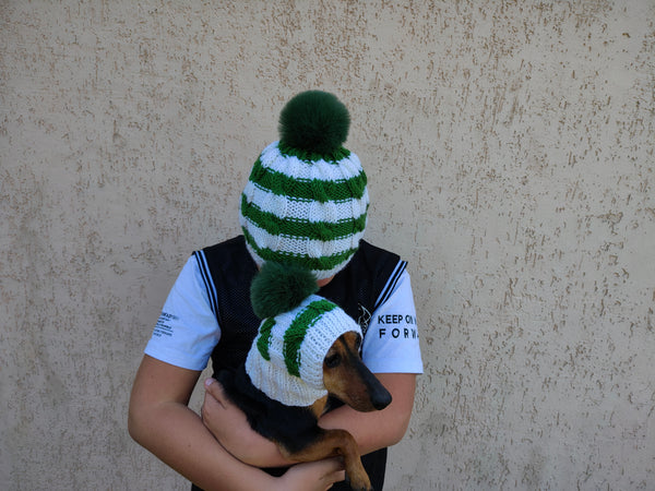 Set of hats with pom-pom for mom and dachshund, set of knitted hats with pom-pom for hostess and dog