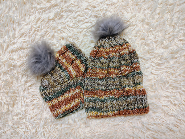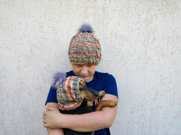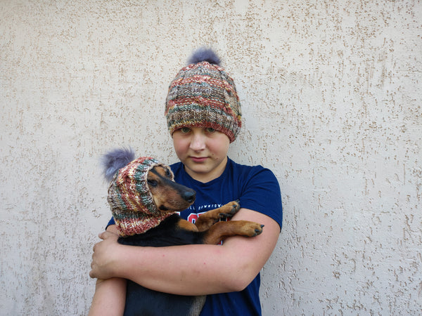 Set of hats with pom-pom for mom and dachshund, set of knitted hats with pom-pom for hostess and dog