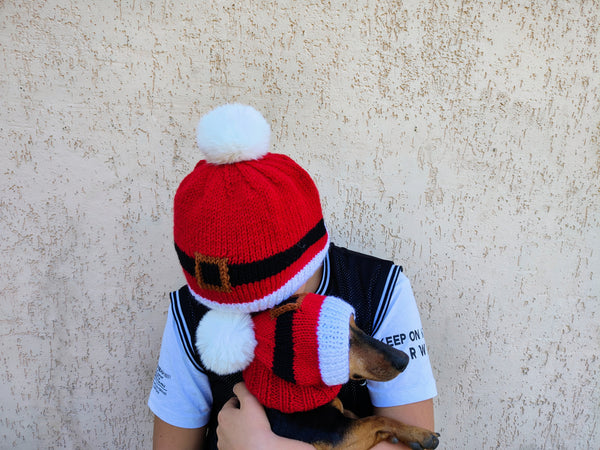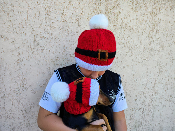 Set of hats with pom-pom for mom and dachshund, set of knitted hats with pom-pom for hostess and dog