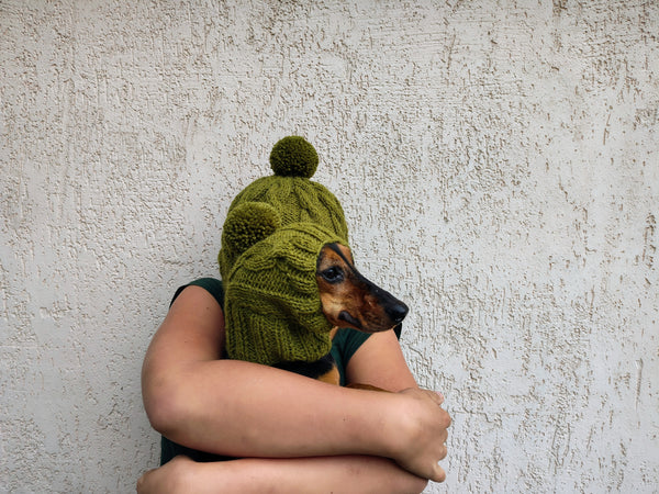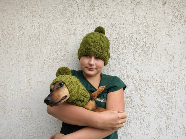 Set of hats with pom-pom for mom and dachshund, set of knitted hats with pom-pom for hostess and dog